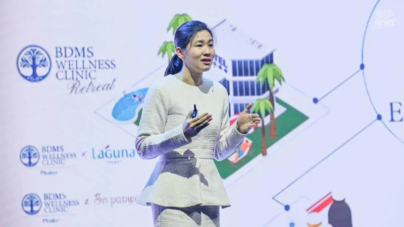 Dimension 1 — Reimagining Wellbeing: Integrating Life, Health, and Business through the Wellness Ecosystem Presented by Dr. Pichaporn Tanapongstorn, Assistant Director and Director of Business Development at BDMS Wellness Clinic, who reflected on integrating health, life, and business under the concept: "Wellness as the New Asset in a Sustainable World." She noted that global trends are shifting from treatment to preventive care, and that Thailand holds strong potential in hospitality and medicine. She envisioned the business of wellness through to 2028, when hotels, residences, and clinics will converge — with AI and data as the connective tissue for holistic, sustainable wellbeing.