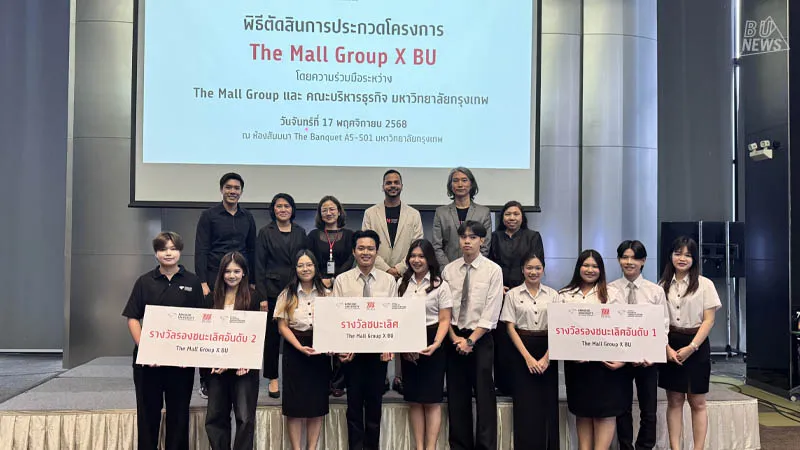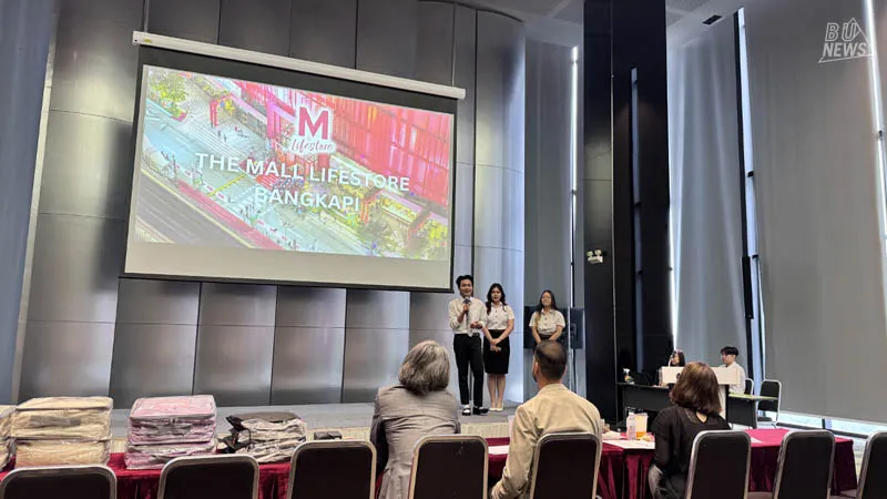 The event was honored by the HR team from The Mall Group Company Limited, including Ms. Suvinan Tunkammoon, Talent Acquisition, Group Human Resources; Mr. Patdanai Jintranakornchaisri, Talent Acquisition, Group Human Resources; and Mr. Manathee Noi-aram, HR Business Partner, Group Human Resources, who conducted a workshop to recruit students for internships and employment, as well as project judging.