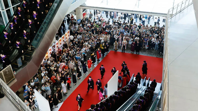 During the ceremony, tribute was paid to Her Majesty Queen Sirikit The Queen Mother through a video presentation of the occasion when she was conferred an Honorary Doctorate in Communication Arts, majoring in Public Relations. A commemorative poem composed by Naowarath Phongphaiboon, National Artist, was recited, followed by a moment of silence to pay final respects to Her Majesty.