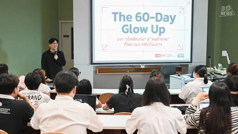Digital Marketing Program, School of Business Administration, organized a special lecture titled "The 60-Day Glow Up: From Intern to the Professional the World (and HR) Wants", featuring K.Kittisak Kasburee, Director of Corporate Strategy and Communications at JobBKK, as the guest speaker for third-year students. The event aimed to build students' confidence and readiness to enter the job market.