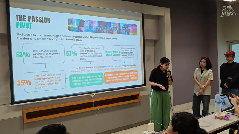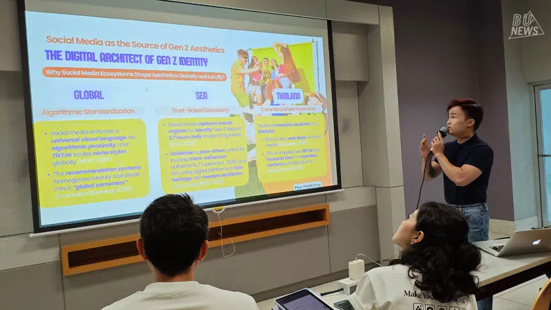 The event featured executives from OPPO THAI, including Mr. Yu Zhang (Patrick), Operating Director, and Miss Chantra Buengbuaba, Brand Manager. They shared perspectives and assigned the challenge under the theme of “Gen Z Aesthetic Trends,” covering social media usage, fashion influences, lifestyle, contemporary culture, and communication styles that affect perception and decision-making among young consumers. Students applied their knowledge of global communication to create tangible brand strategies.