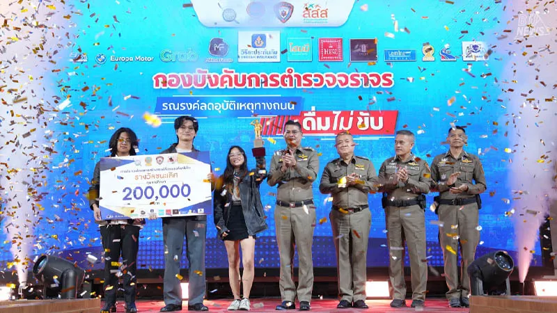 The competition drew students from universities across Thailand, with 10 finalists selected to showcase their creative media production skills — conveying perspectives and impacts of drunk driving in an accessible and powerful way, to build public awareness and encourage long-term behavioral change among road users. Judging was carried out by a panel of distinguished experts from the public sector, private sector, civil society, and the police force.