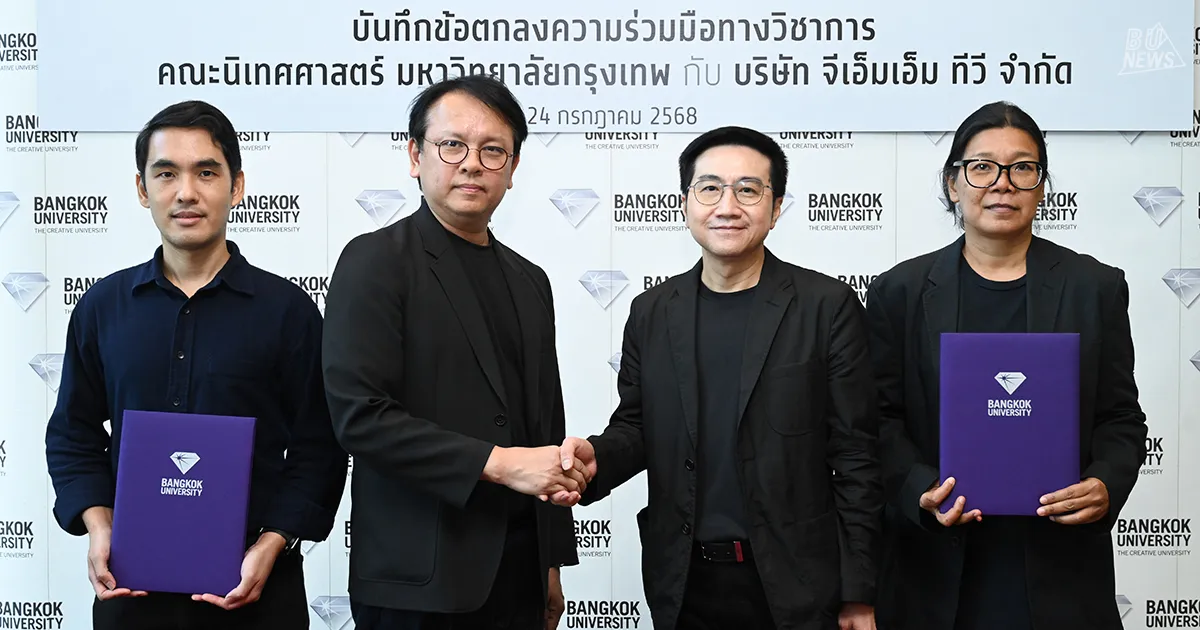 The signing of this MoU between the country's number 1 private university according to QS World University Rankings: Asia 2026 and a leading media production organization reflects the communication arts strengths of the Brand Management and Strategic Communication program, Master of Arts in Communication Arts, Bangkok University. The program is ready to bring new media era knowledge through academic learning and practical experience from faculty and media industry partners to create personnel with knowledge, abilities, and potential ready to enter the digital era media industry, for the development of Thailand's media industry to grow with quality, stability, and sustainability.