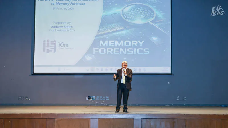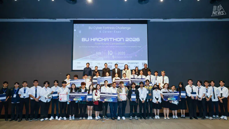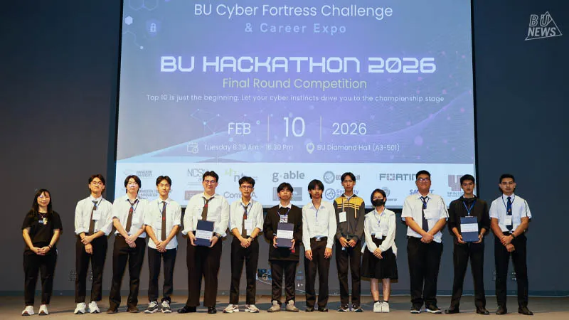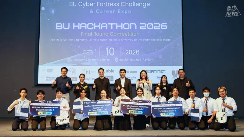 The highlight was the BU Cyber Fortress Hackathon 2026 Grand Final, in which 9 student teams from various universities competed by brainstorming and applying Cybersecurity knowledge combined with AI technology to develop innovative ideas for addressing today's cyber threats, before presenting their work (Final Pitching) before a panel of distinguished judges.