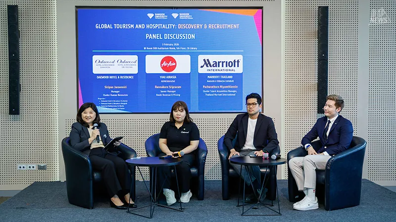 International Tourism and Hospitality Management (ITHM) program at the Bangkok University International joined forces with over 30 leading partners in the tourism and hospitality industry — including Marriott International, IHG Hotels and Resorts, and Hilton — to host the "Global Tourism, Hospitality Discovery & Recruitment 2026" event. The event took place on the 5th floor of the Surat Library Building (C6), Bangkok University, and was a resounding success in both industry collaboration and student development.