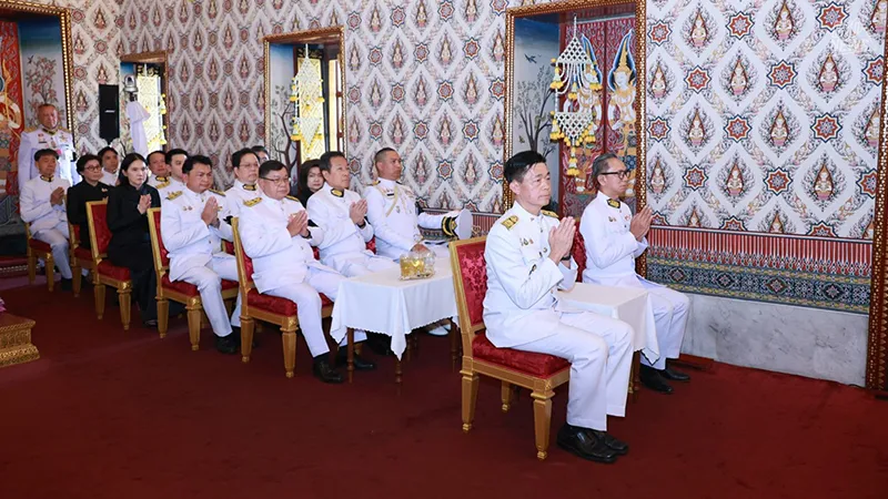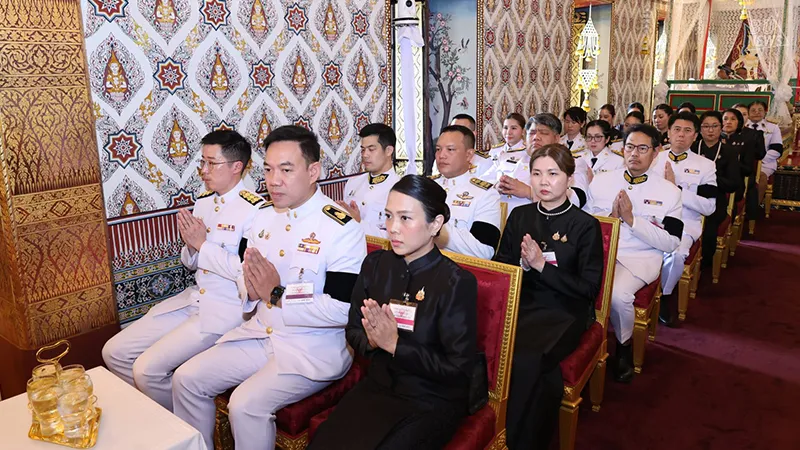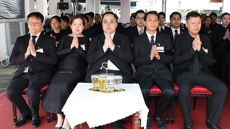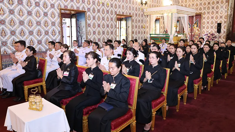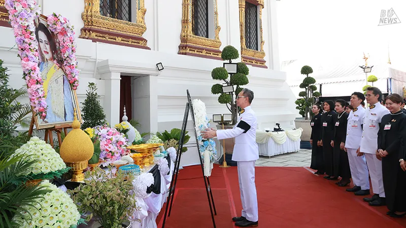 Bangkok University has been graciously granted royal permission to serve as host in performing merit-making ceremonies dedicated to the royal funeral of Her Majesty Queen Sirikit, The Queen Mother, at the Dusit Maha Prasat Throne Hall within the Grand Palace. The ceremony was presided over by a congregation of 10 monks from Wat Don Chedi, Wat Ban Mi, Wat Chi Pakhao, and Wat Thawitchattaram, Suphanburi Province; Wat Phra That Phanom, Wat That Renu, Wat That Prasit, Wat Si Chomphu, and Wat Sawang Suwannaram, Nakhon Phanom Province; and Wat Phra Si Mahathat, who performed the chanting of Matika, Sadap Pakorn, and Anumodana.