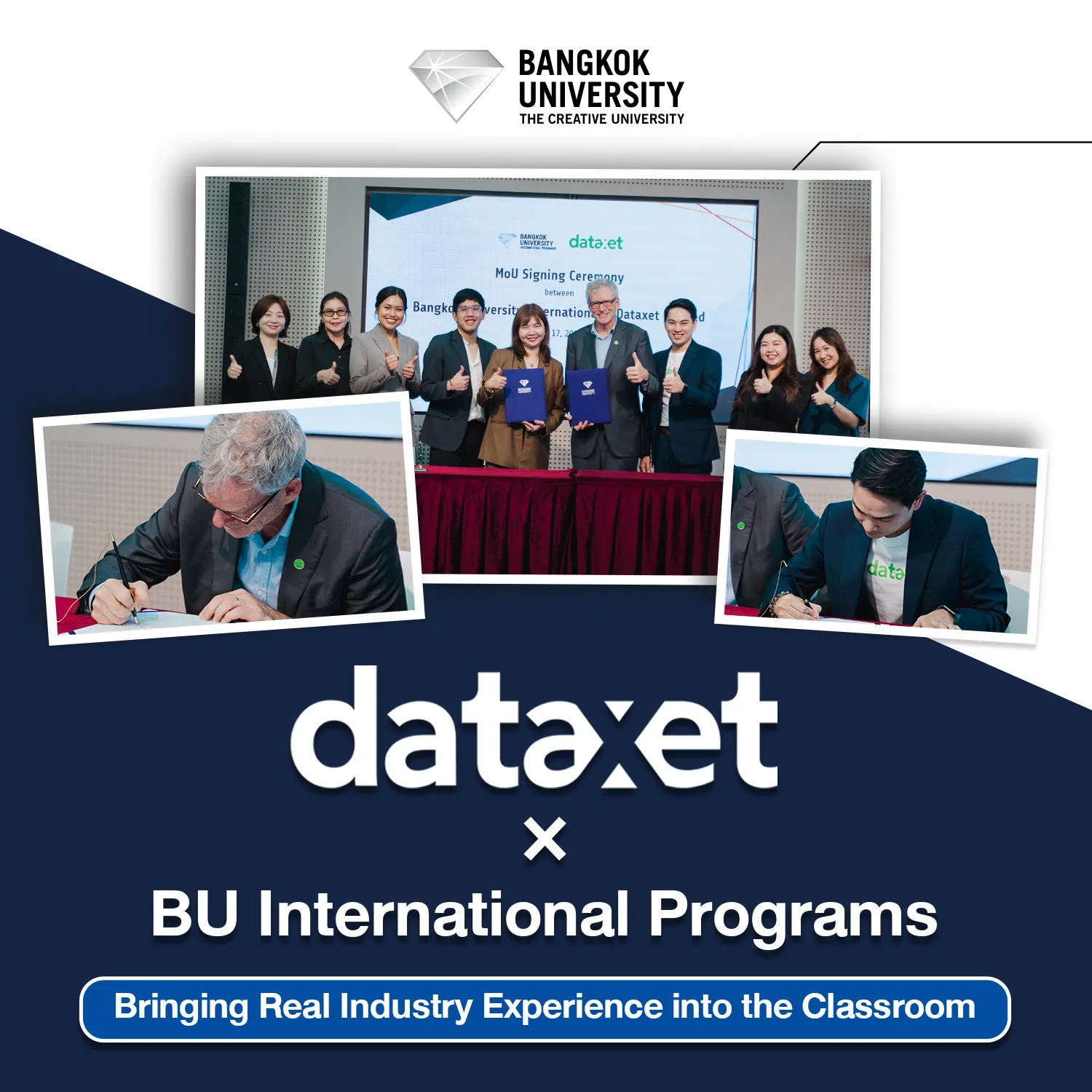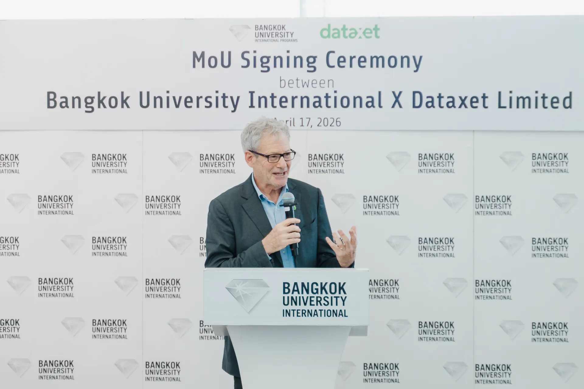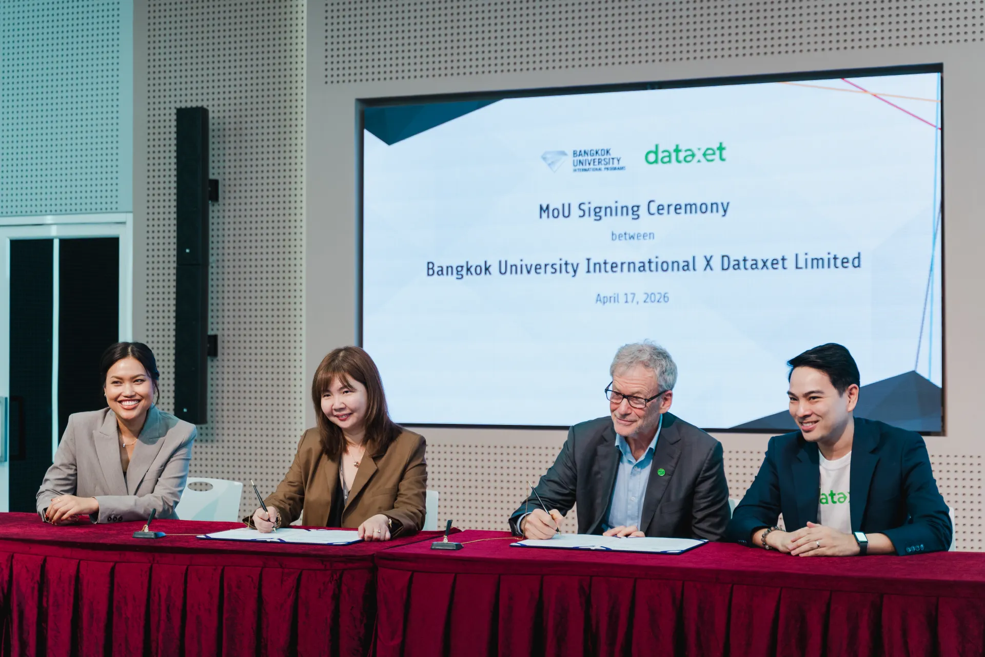 The signing was led by Robert Kabus, Co-founder and Chief Strategy Officer, Dataxet Limited, and Saroot Udomkarn, Commercial Director, Dataxet Limited, alongside Asst. Prof. Dr. Duangthida Nunthapirat, Assistant to the President for International Affairs and Global Education and Acting Dean, Bangkok University International Programs, and Dr. Panisara Kongthaworn, Associate Dean, Bangkok University International Programs.
