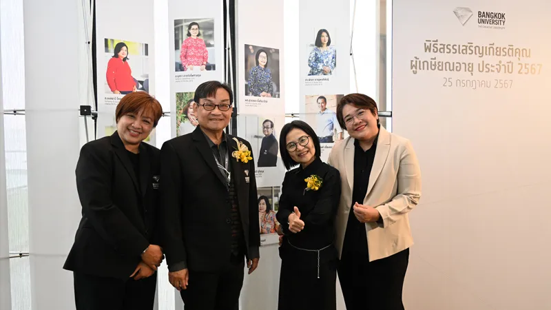 มหาวิทยาลัยกรุงเทพจัดพิธีสรรเสริญเกียรติคุณผู้เกษียณอายุ ประจำปี 2567 โดยมี ผศ.สรรเสริญ มิลินทสูต รองอธิการบดีอาวุโสด้านวิชาการ เป็นประธานกล่าวสรรเสริญเกียรติคุณ และมอบโล่แก่ผู้เกษียณอายุ