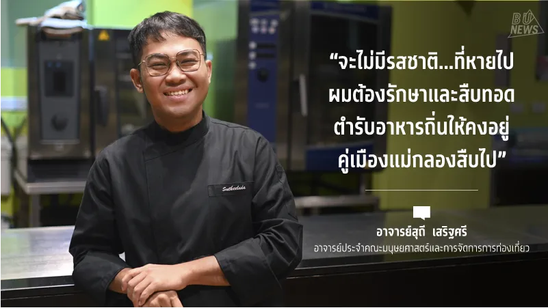 ขอแสดงความยินดีกับอาจารย์สุถี เสริฐศรี อาจารย์ประจำภาควิชาการจัดการการโรงแรม คณะมนุษยศาสตร์และการจัดการการท่องเที่ยว โชว์ฝีมือผ่านเมนู “หอยหลอดผัดฉ่า” เป็นผู้ชนะการโหวตเป็นอันดับ 1 ของจังหวัดสมุทรสงคราม ในกิจกรรม 1 จังหวัด 1 เมนู เชิดชูอาหารถิ่น “รสชาติ...ที่หายไป The Lost Taste” ประจำปี 2568 จัดโดยกรมส่งเสริมวัฒนธรรม กระทรวงวัฒนธรรม ร่วมกับสำนักงานวัฒนธรรมจังหวัด 76 จังหวัด และกรุงเทพมหานคร โดยได้รับการรับรองจากคณะกรรมการแต่ละจังหวัดในการคัดเลือกเมนูอาหารท้องถิ่น ผ่านเกณฑ์การตัดสิน เช่น วัตถุดิบท้องถิ่นที่สำคัญของอาหาร การพัฒนาต่อยอดเพิ่มมูลค่า เมนูที่พร้อมครบด้วยองค์ประกอบด้านโภชนาการ รวมถึงการอนุรักษ์ความอุดมสมบูรณ์ของสัตว์ พืชพรรณนานาชนิดของท้องถิ่น