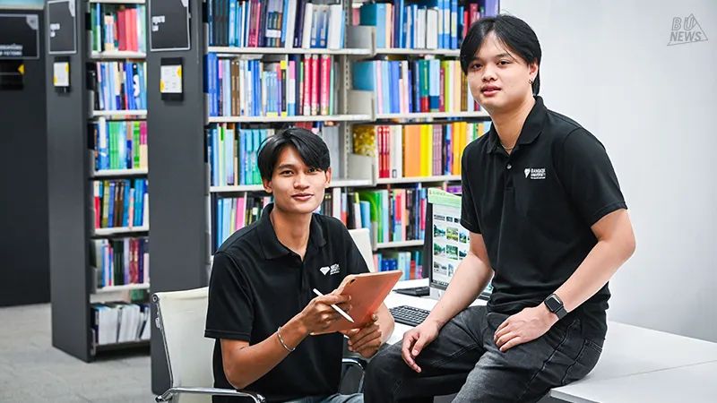 นายนัทธพงศ์ ภูทองกิจเจริญ (โดนัท), นายทรงธรรม ฤทธิ์อร่าม (พลับ) นักศึกษาคณะดิจิทัลมีเดียและศิลปะภาพยนตร์