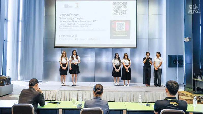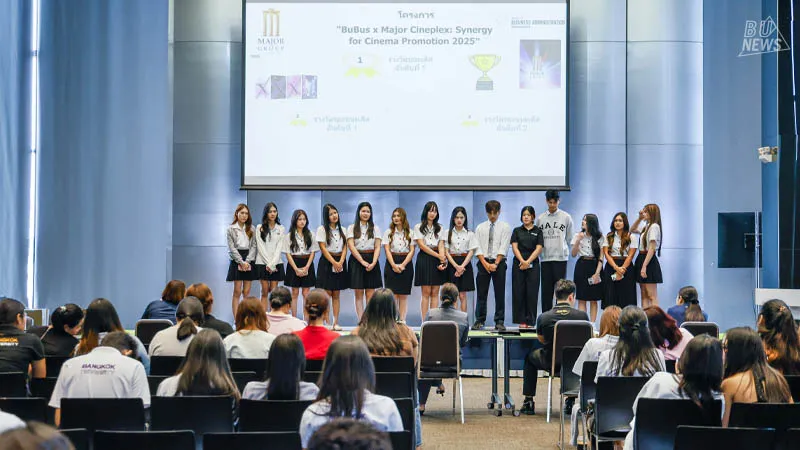 สาขาวิชาการตลาด คณะบริหารธุรกิจ จัดงานตัดสินโจทย์ธุรกิจ โครงการ “BuBus x Major Cineplex: Synergy for Cinema Promotion 2025” ภายใต้รายวิชา MK422 Sales Promotion Strategies และ MK426 Entertainment Marketing ณ ห้อง The Banquet ชั้น 5 อาคาร A5 มหาวิทยาลัยกรุงเทพ เพื่อส่งเสริมการเรียนรู้ผ่านโจทย์จริงจากภาคธุรกิจ