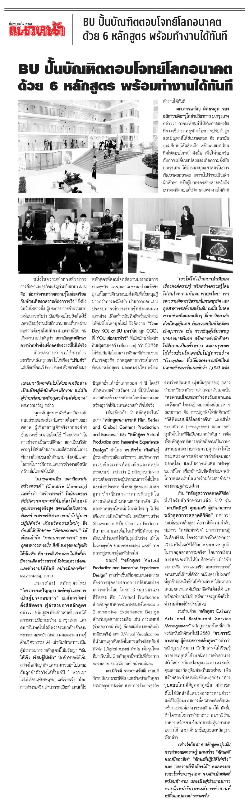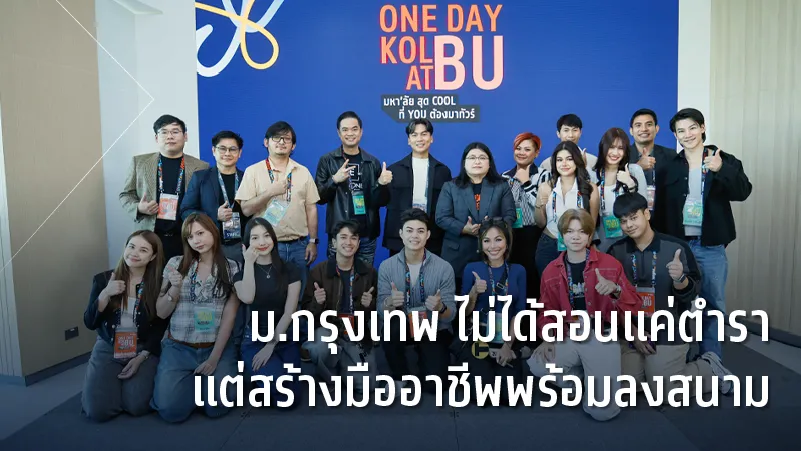 มหาวิทยาลัยกรุงเทพ จัดงาน “One Day KOL at BU มหา’ลัย สุด COOL ที่ YOU ต้องมาทัวร์” เปิดบ้านให้เหล่าอินฟลูเอนเซอร์ (Influencer) กว่า 50 ชีวิต และสื่อมวลชน ได้ร่วมสัมผัสโมเดลการศึกษาที่ทำงานร่วมกับภาคธุรกิจ ภาคอุตสาหกรรมในการพัฒนาหลักสูตร เปลี่ยนกระบวนทัศน์ทลายกำแพงระหว่างโลกวิชาการและการทำงาน ผลิตคนรุ่นใหม่พร้อมทำงานได้ทันที ตอบโจทย์ความต้องการภาคธุรกิจ แก้ปัญหาช่องว่างระหว่างการเรียนกับการทำงาน ด้วยการสร้าง Ecosystem ร่วมกับเครือข่ายพาร์ทเนอร์กว่า 1,000 แห่ง พัฒนาหลักสูตรตั้งแต่ต้นทาง ผลิตบัณฑิตที่มีทั้ง Passion ความคิดสร้างสรรค์ ทักษะทางสังคม และพร้อมทำงานได้ทันที
