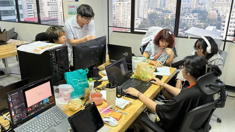 ทีมแบ่งงานออกเป็นสองฝั่งอย่างชัดเจน ฝั่ง Code ดูแลระบบ UI กลไกตัวละคร และ Entity ทั้งหมดผ่าน Unity และ Visual Studio ขณะที่ฝั่ง Art รับผิดชอบการวาดตัวละคร 2D ออกแบบ Map และ Animation โดยมีบทบาท Tech Art คอยเชื่อมทั้งสองฝั่งให้ทำงานร่วมกันได้อย่างราบรื่น และ Project Manager คอยประสานงานและตัดสินใจทิศทางของทีม