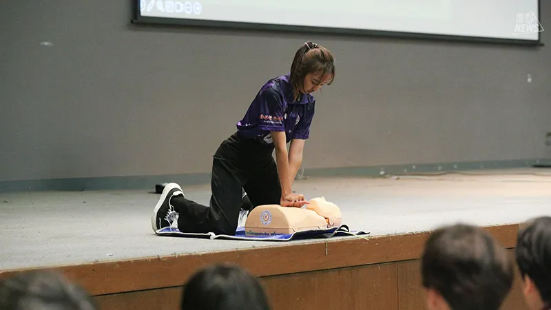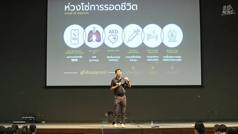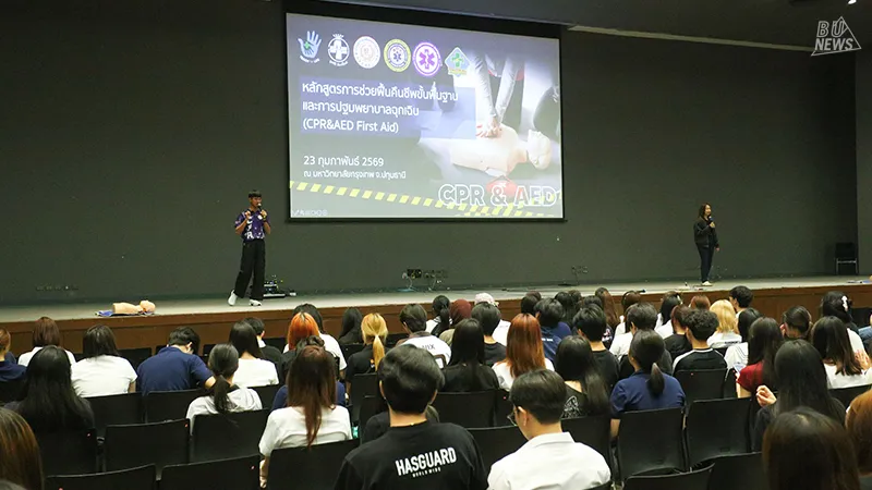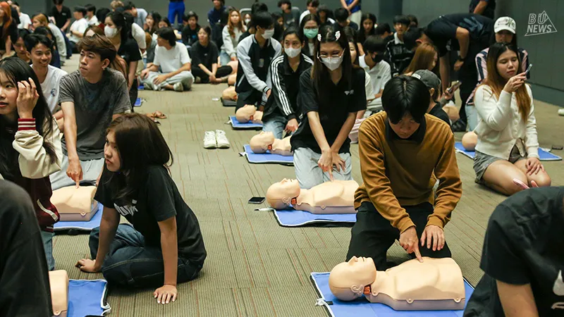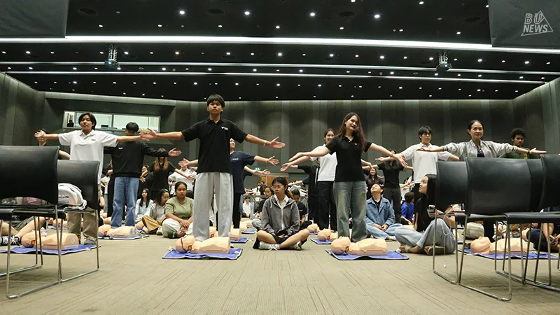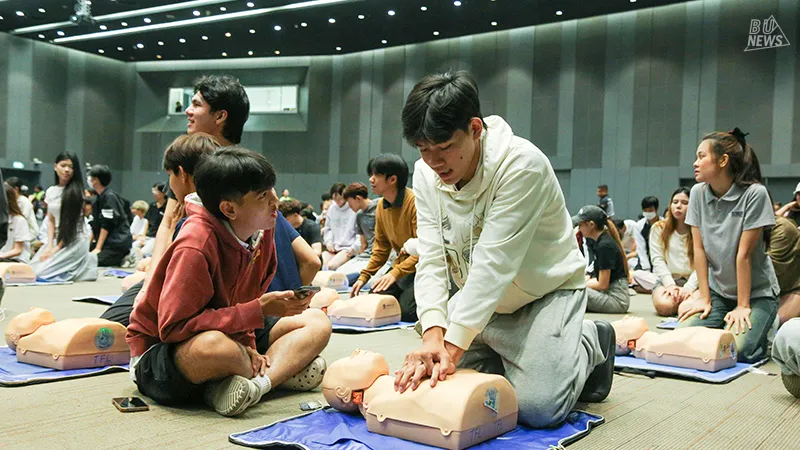 ศูนย์บริหารจัดการหมวดวิชาศึกษาทั่วไปและสายกิจการนักศึกษา จับมือกับ Teach for Life Association & Oxyfight Foundation จัดอบรมเชิงปฏิบัติการสุดเข้มข้น "CPR & AED: การปฐมพยาบาลฉุกเฉินและการกู้ชีพขั้นพื้นฐาน" ให้กับนักศึกษามหาวิทยาลัยกรุงเทพ