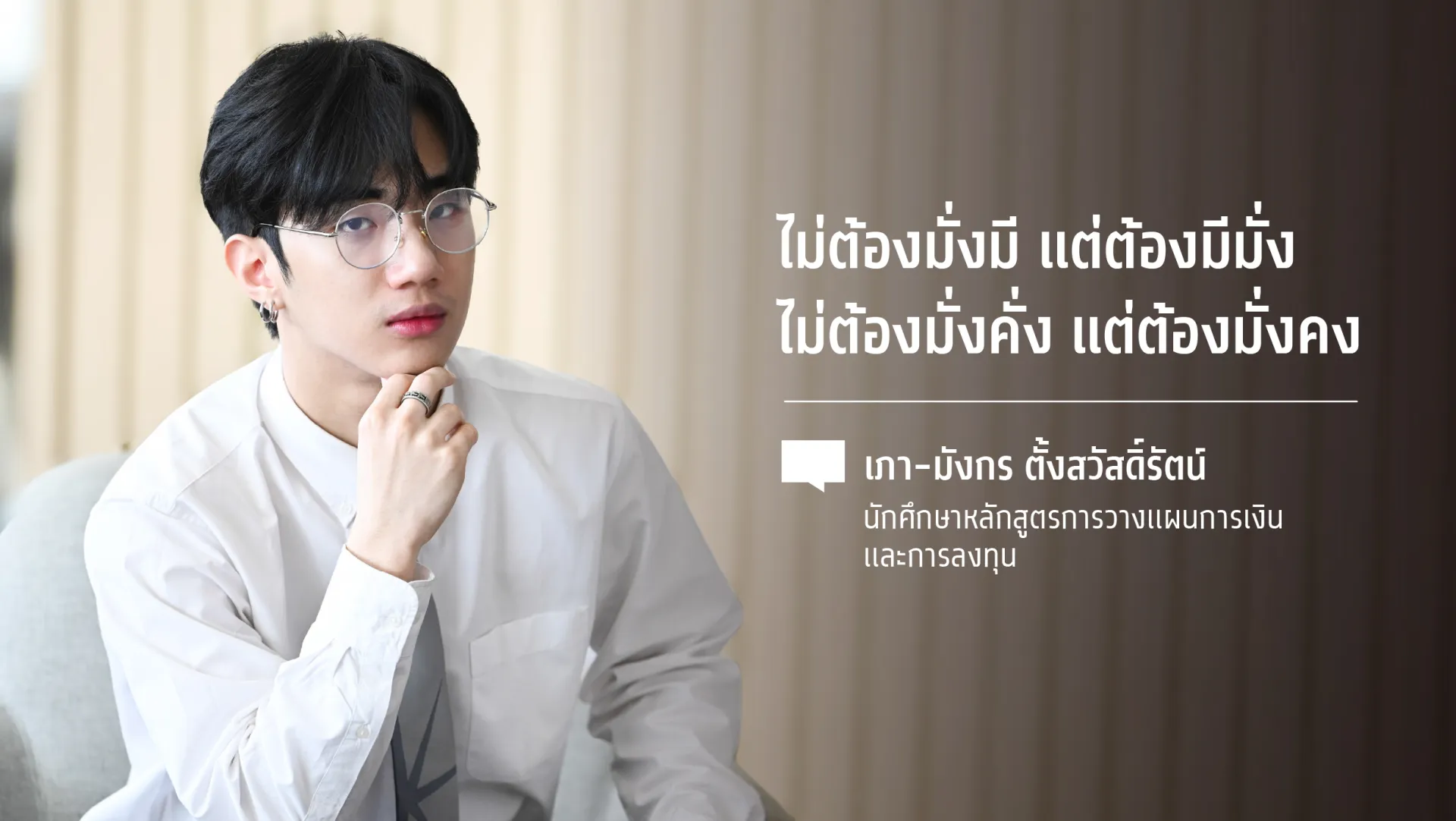 เภา มังกร ตั้งสวัสดิ์รัตน์ นักศึกษาคนแรกของหลักสูตรการวางแผนการเงินและการลงทุน ที่สอบผ่าน CFP® ฉบับที่ 4.1 (ชุดวิชาที่ 5) ได้ตั้งแต่ยังเป็นนักศึกษา และสามารถสอบผ่าน CFP® ได้แล้วถึง 5 โมดูล จากทั้งหมด 6 โมดูล (ฉบับที่ 1–4.1 หรือชุดวิชาที่ 1–5) เหลือเพียงอีกหนึ่งการสอบก็จะก้าวสู่การเป็นนักวางแผนการเงินอย่างเต็มรูปแบบ พร้อมได้รับใบอนุญาตวิชาชีพผู้วางแผนการลงทุน (IP License) และสามารถขึ้นทะเบียนเป็นที่ปรึกษาการเงิน AFPT™ ได้