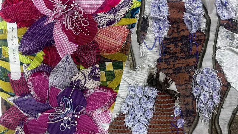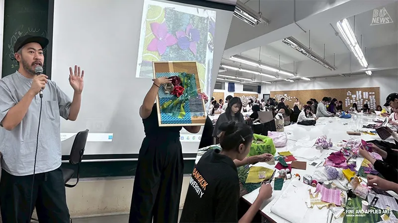2. โครงการ Collage Arts: From Fabric Waste to Collage Arts Creation: BU x Oh My Craft Studio x Jim Thompson – A Sustainable Project เพื่อพัฒนาการเรียนการสอนและส่งเสริมให้นักศึกษาได้เรียนรู้กระบวนการออกแบบตามแนวทางความยั่งยืน (Sustainable Design) โครงการนี้จัดขึ้นสำหรับนักศึกษาชั้นปีที่ 2 ในรายวิชา FSD333 Textiles Surface Design โดยมีคณาจารย์ผู้สอน ได้แก่ ดร.อรภาวดี เสรีวิวัฒนา อ.ธีระ ฉันทสวัสดิ์ และอ.ฐิติพร นิรันดร์วิชย