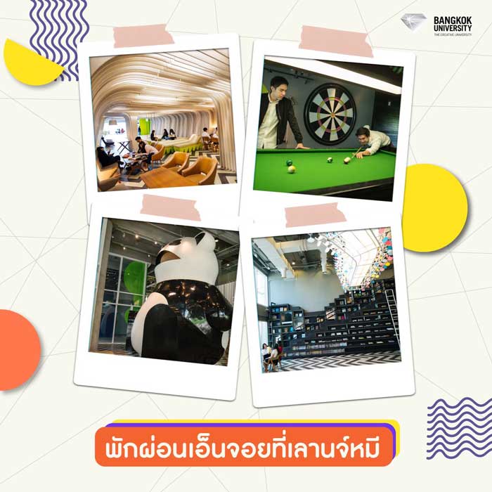 แต่ถ้าใครอยากพักผ่อนอย่างเต็ม ขึ้นไปชั้น 2 เลย นักศึกษาจะได้เจอกับโซนกิจกรรมแบบจัดเต็ม ไม่ว่าเป็น ปิงปอง สนุ๊ก ต่อยมวย หรือใครอยากงีบสักนิด ก็มีบับเบิ้ลให้นอนหนุนสบายๆ